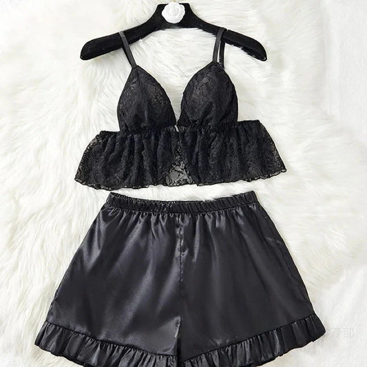 Basic Lingerie Satin Camisole with Shorts Nighty Summer Special Silk Lace Lingerie