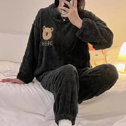 Basic Black Bear Winter Fleece Coord Set Night Dress