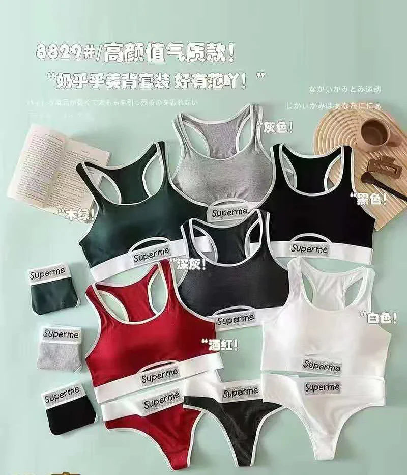 BLS Sports Bra Underwear Set Sweat Absorbent Gym Workout Lingerie